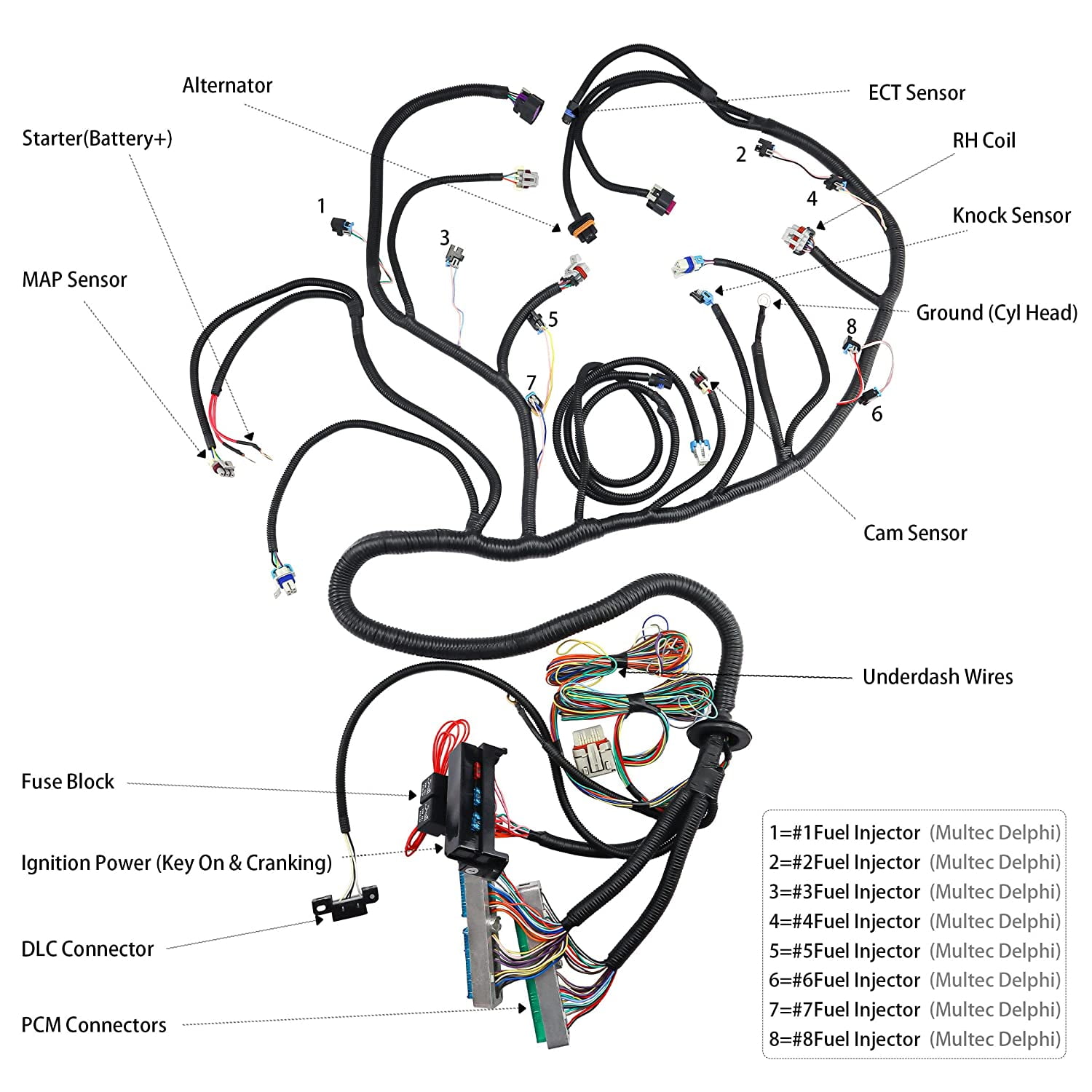 Wmphe Engine Wiring Harness Professional 4l60e Standalone Wiring Harness Compatible With Dbc Ls1 4 8 5 3 5 7 6 0 1997 1998 1999 2000 2001 2002 2003 2004 2005 2006 Ev1 Injector Plug And 3 Pin Maf Buy Online At Best Price In Uae Amazon Ae