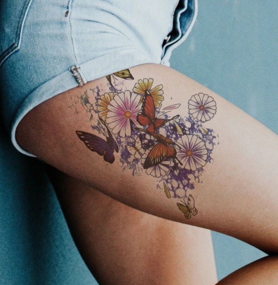 Temporary Tattoo Large Floral Butterfly Daisy Flowers Body Art Fake Waterproof Ebay